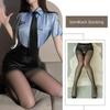 Cops Policewoman Office Lady Cosplay Costume Blue Shirt with Wrap Hip PU Leather Skirt Ties Panties Set Erotic Sexy Lingerie