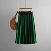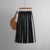 Qooth Elastic Waist Black White Color Block Knit Midi Skirt Vintage Pleated Skirt for Women QT2787