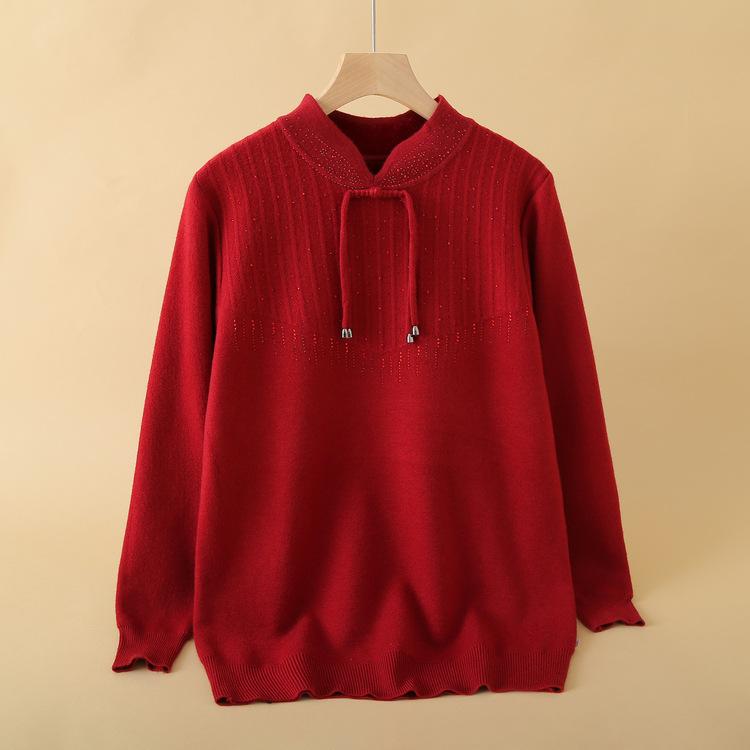 Mom's New Style Long-sleeved Sweater for Autumn and Winter, Middle-aged and Elderly Women's Tops, Fashionable Slim Base Shirt