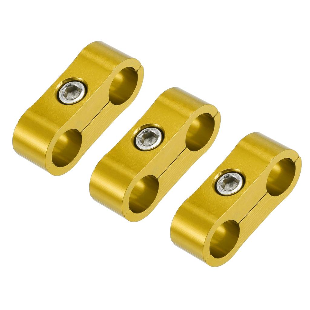 X AUTOHAUX 3pcs Car AN4 11mm Hose Separator Clamp Hose Clamp Fuel Line Connector Aluminum Alloy Blacket Gold Tone