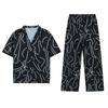 Fashion Wind Spring and Summer New Arrival V-neck Single Breasted Print Loose Short Sleeve Shirt Wide Leg Pants Casual Two-Piece Suit