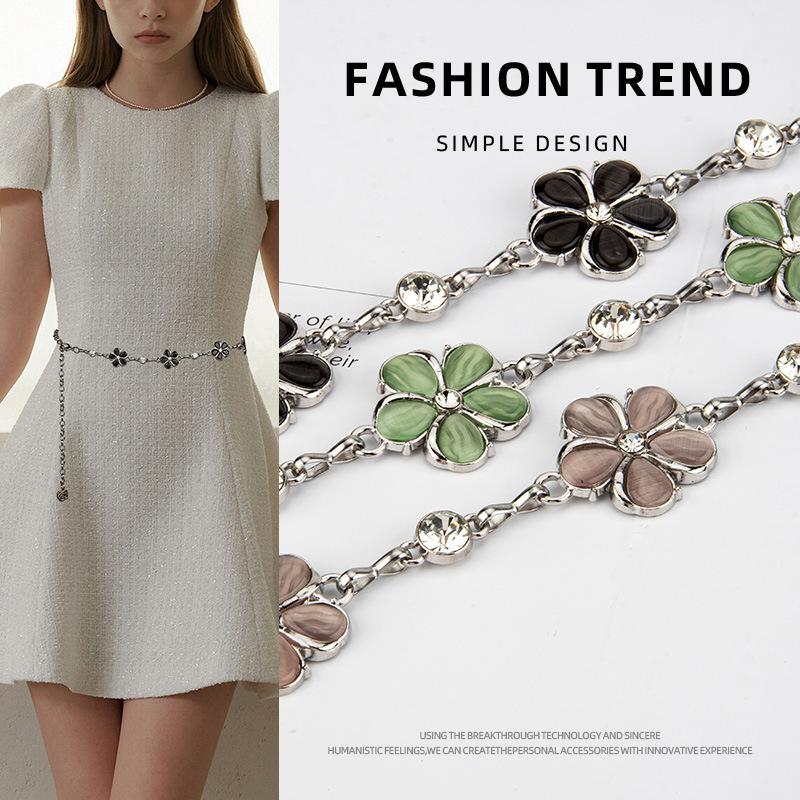 Four-leaf Clover Flowers Metal Waist Chain Women's Retro Bohemian Dress Accessories Decorative Belt Women