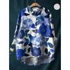 European Plus Size Women Clothing Retro Hong Kong Style Spring and Autumn New Breasted Print Loose Mid-Length Casual Long Sleeve Shirts Top