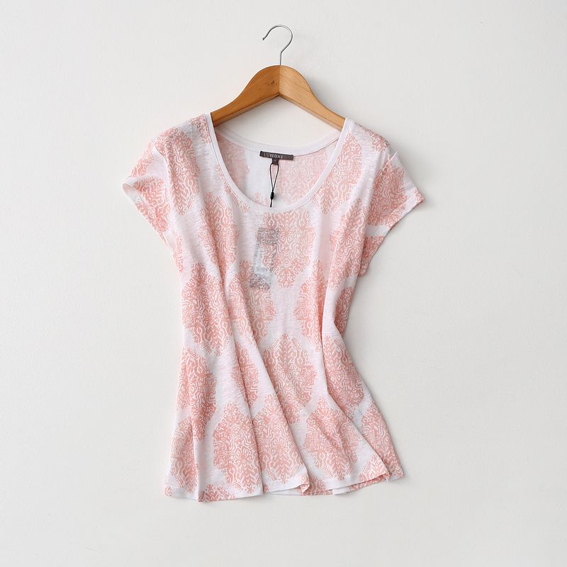 Awesome Customer-Supplied Fabric Export Linen Print Export Round Neck Loose Short Sleeve T-shirt Female Linen Tops Summer