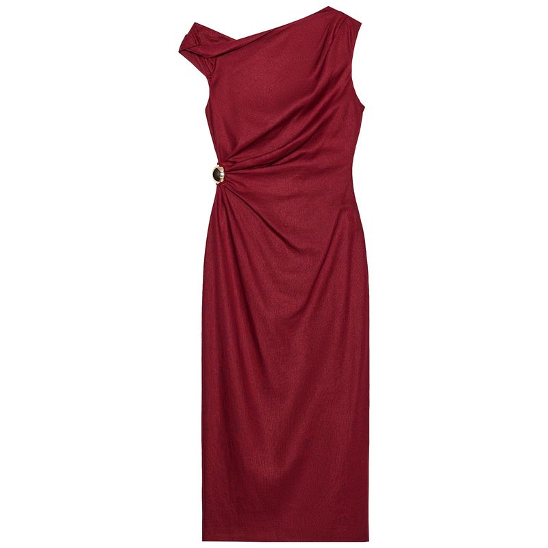 Zaprha 2025 New Arrival Unique Beautiful Linen Blend Ruched Midi Skirt Dress Waist Slim Looking 2840709