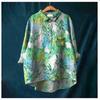 European Retro Artistic Hong Kong Style Plus Size Women's Clothing Turn-down Collar with Leaves Print Loose Mid-Length Casual Long Sleeve Shirt Top