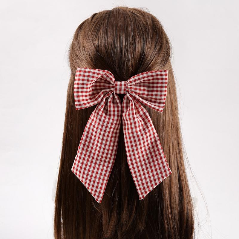 Tartan Printed Bowknot Hair Clips Girls Bow Hairgrips Lace Trim Hair Accessories Headwear