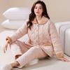 100% Pure Cotton Pajamas Women's Winter Three-layer Thickened Middle-aged Mother Padded Jacket Warm Loungewear Set