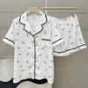 Elegant Sweet Black Lace Bow Print Pajamas for Women Casual Summer Cool Female Sleepwear Lady House Clothing