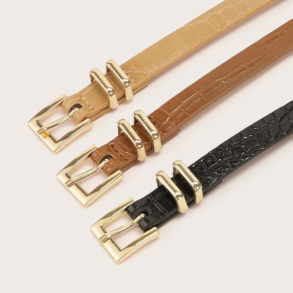 The New Lady's Exquisite and Versatile Crocodile-patterned Thin Waist Belt Set Features A Fashionable Basic PU Belt