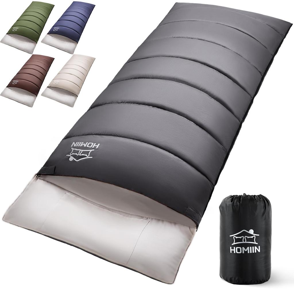 Homiin Envelope-Style Sleeping Bag for Winter and Summer, All-Season, Includes Pillow, Compact, 1.4kg, 1.8kg, 2.5kg, Easy Storage, Comfortable Temperature Range -10°C-15°C, Perfect for Camping, Mountaineering, Outdoor Activities, Car Camping, and Emergency Preparedness, Fully Washable, Includes Storage Bag, Suitable for Spring and Autumn