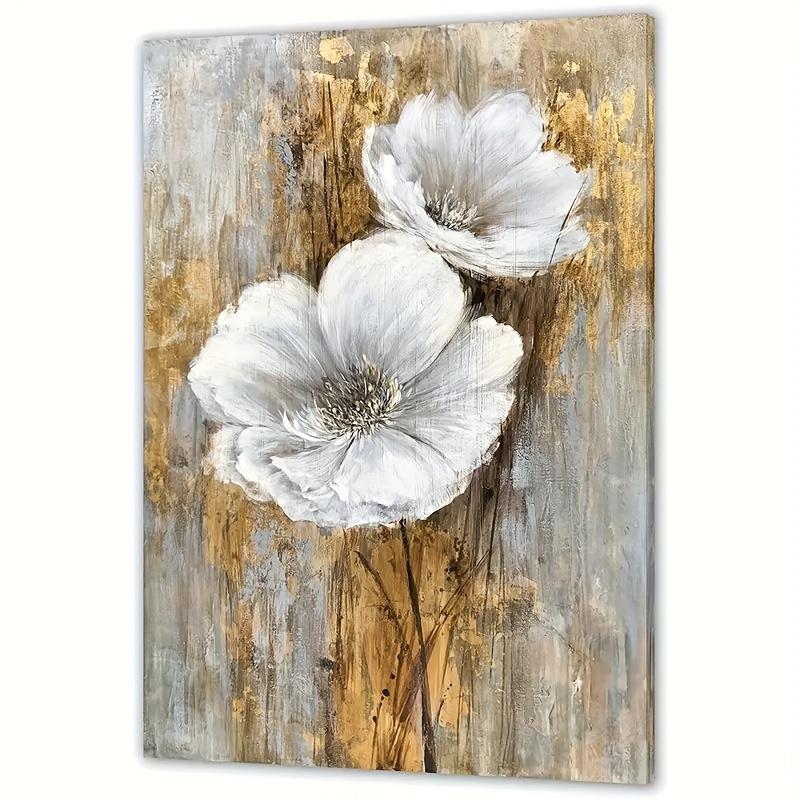 With Frame White Floral Wall Pictures Painted Lily Bouquet Flower Painting Artwork For Living Room Decoration Wall Decor Living Room