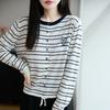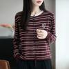 Spring and Autumn's New Multi-color Round-neck Knitted Cardigan with Long Sleeves and Striped Embroidered Hearts