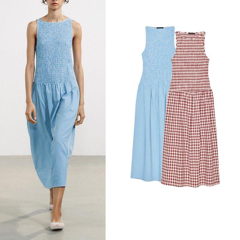 Spring and Summer Women's Clothing Gentle Round Neck Sleeveless Honeycomb Format Stretch Fabric Midi Skirt Dress 3067329