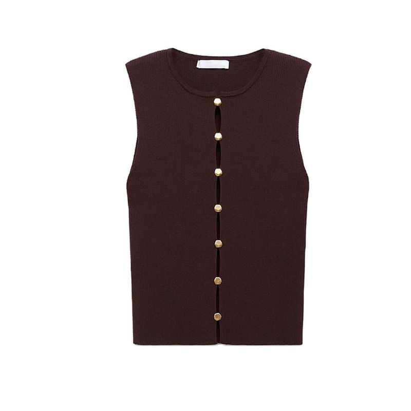 Autumn New Women Clothes Casual Round Neck Sleeveless Metal Button Decoration Knitted Slim Fit Vest 17034140