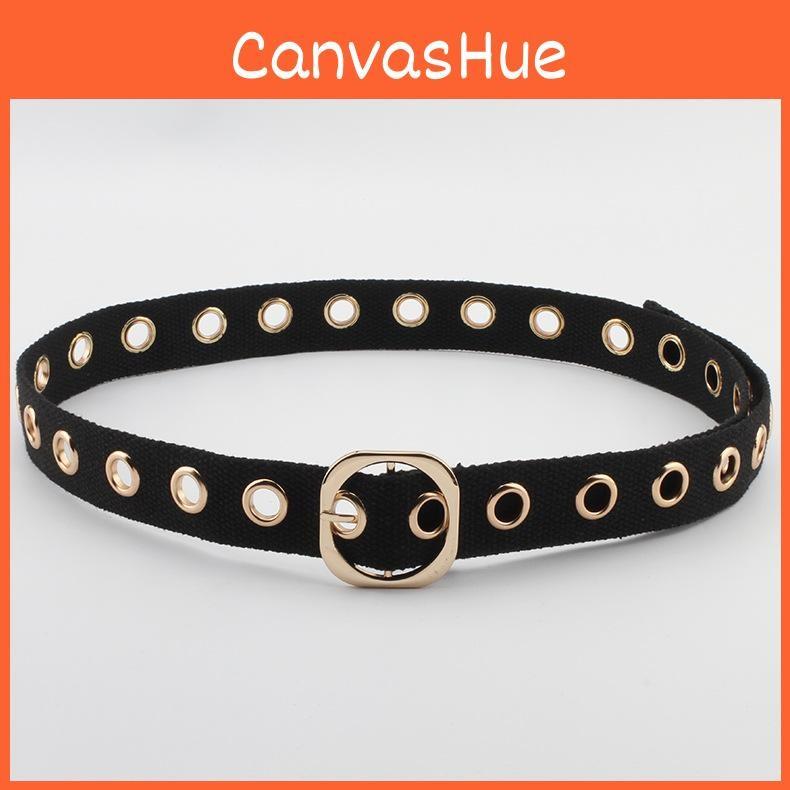 This unisex fabric belt features a hollow design and a sleek gold buckle, combining street style with practicality. with a single loop and needle clasp for secure fit. Ideal for casual wear and daily outfits, it enhances street fashion. Wipe clean with a damp cloth to maintain its appearance.