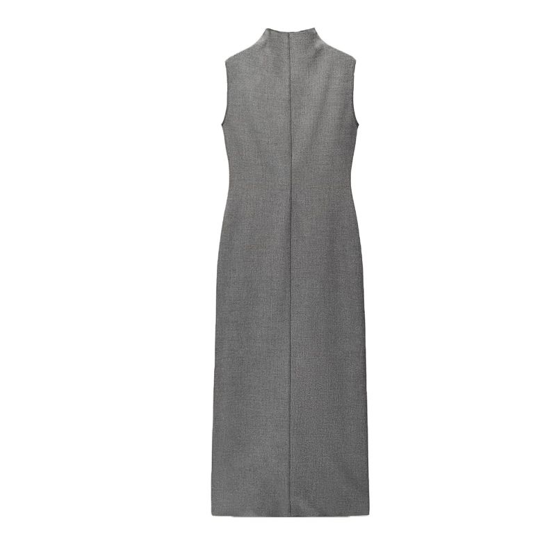 Spring New Arrival Formal Dress Work Clothing Casual Stand Collar Sleeveless Stitching Straight-leg Dress 8435583
