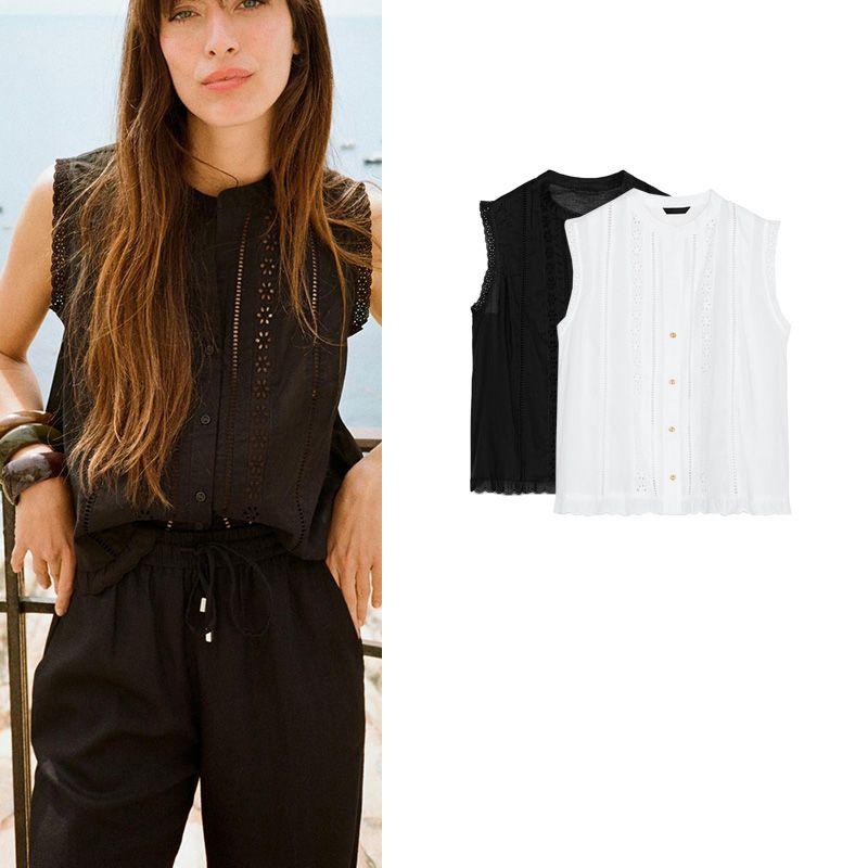 Summer New Product Women's Clothes Round Neck Cut Out Embroider Vertical Lace Romantic Style Sleeveless Tops 4387039