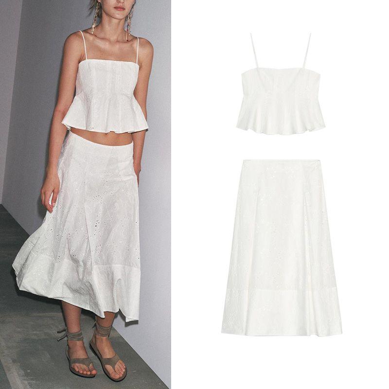 Summer Embroidered Wave-Style Wide Hem Top 4786109 Cotton Mid-Waist Embroidered Poncho Skirt 4786110