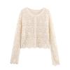 Kaslead New Women Clothes Western Style Fashion Round Neck Long Sleeve Hollow Wave Hem Knit Cardigan