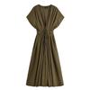 Kaslead New Arrival Women's Clothing Fashion Style Fashion Pleated Draped Shoulder Short Sleeve Midi Skirt Dress 2965260