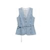 V Neck Sleeveless Waist Denim Vest 17071272 High Waist Loose Wide Legs Length Denim 17091272