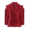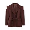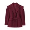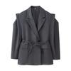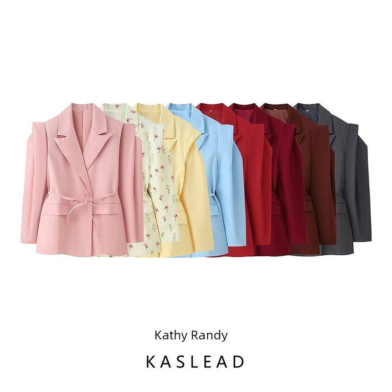 Kaslead New Women Clothes Western Style Fashion Simple Waist Hugging Lace-up Wide Shoulder Blazers