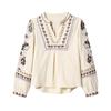 Kaslead New Women Clothes Western Style Fashion Simple French Style V-neck Heavy Industry Embroidery Shirts