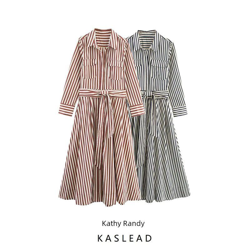 Kaslead New Women Clothes Western Style Fashion Simple Stripe Shirt Style Dress 8622048