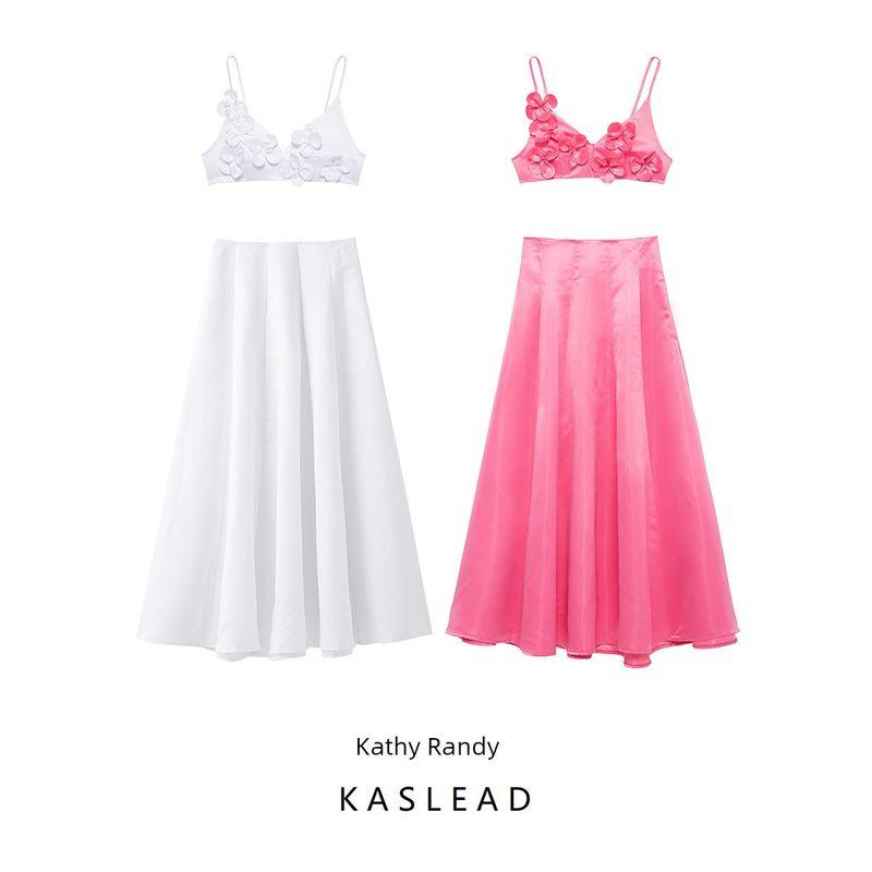 Kaslead New Women Clothes Western Style Fashion Simple Two-Color Floral Flower Solid Set