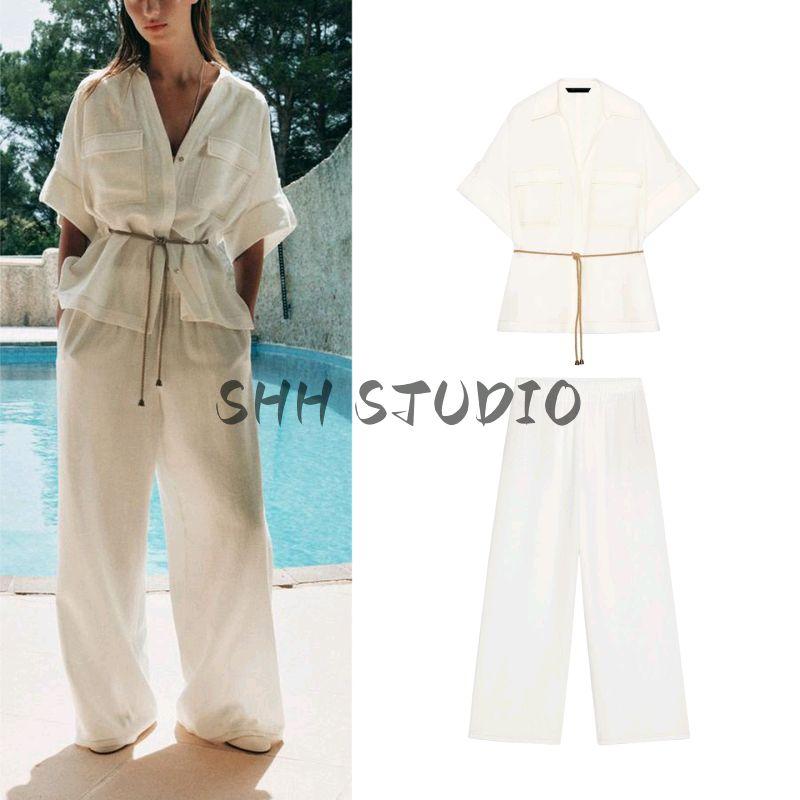 Summer Simplicity Shoelace Tour Hunting Jacket Shirt 3711393 High Waist Vacation Style Wide Leg Pants 2116393