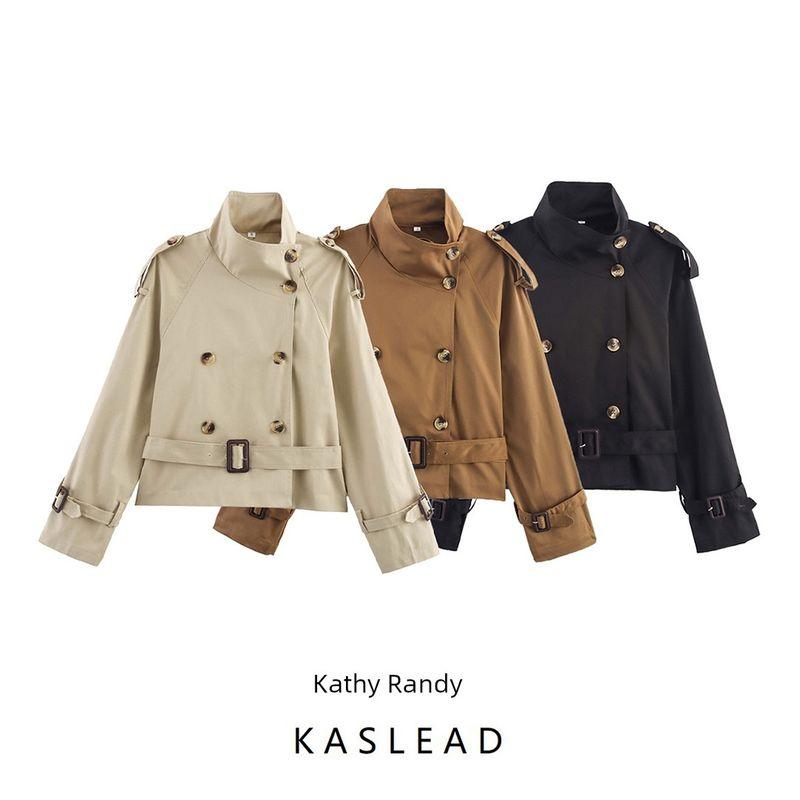 Kaslead New Women Clothes Western Style Versitile Fashion Short with Waist Buckle Trench Coat Outerwear