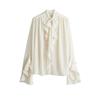 Summer New Women Clothes French Style Design Stand Collar Long Sleeve Frill Neckline Lace-up Top 1264464