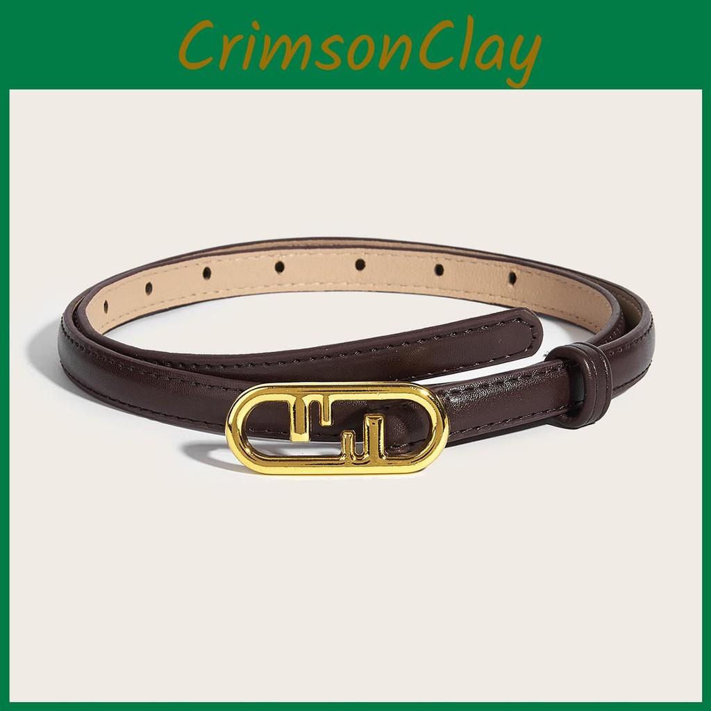 Oval Simple Gold Buckle Decoration Women Solid Color Slim Belt For Daily Use
