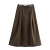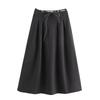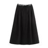 Kaslead New Arrival Women's Fashion Style Fashion Herringbone Round Belt Big Hem Skirt Long Dress