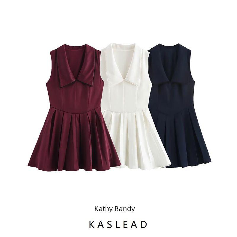 Kaslead New Arrival Women's Clothing Fashion Style Fashion Minimalist Wide Pleated Collar Short Dress 2124550