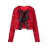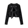 Kaslead New Women Clothes Western Style Fashion Simple and Versatile Bow Sequins Top