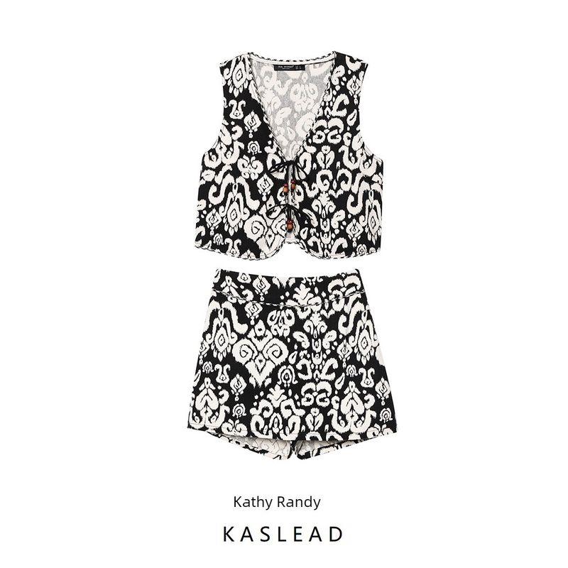Kaslead New Arrival Women's Clothing Fashion Style Printed V-neck Sleeveless Vest Shorts 2997569 2854569