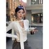 Kumikumi Sexy Wind Black Streamer V Neck Long Sleeves T-shirt Women's Autumn All-Matching Slim Fit Slimming Sexy Top