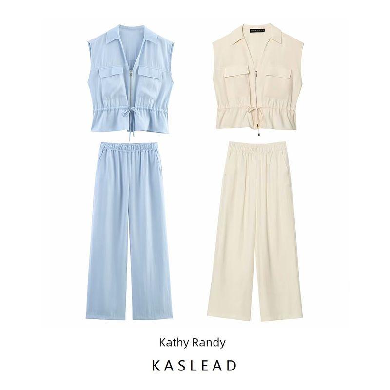 Kaslead New Arrival Women's Clothing Fashion Style Sleeveless V Neck Tops Casual Pants 1971140 1971040