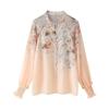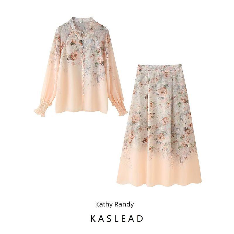 Kaslead New Women Clothes Western Style Fashion Stand Collar Flower Print Long Sleeve Shirts Skirt