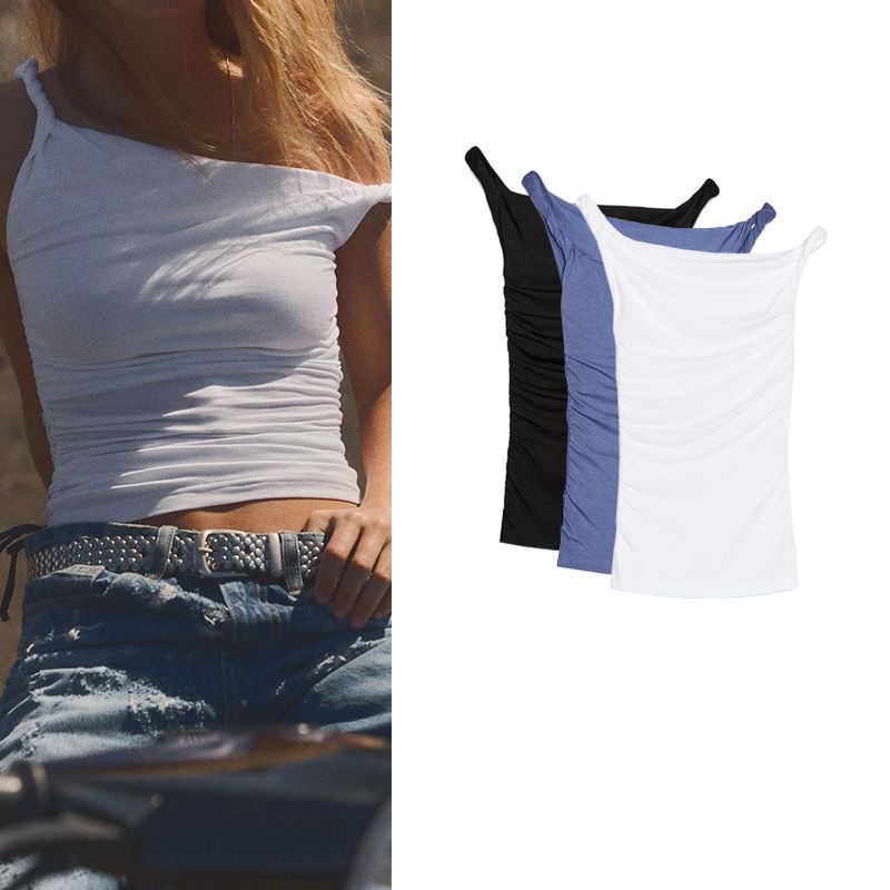Summer Women's Modal Blended Twisted Straight Collar Minimalist Elegant Fashion Suspenders Tops 4174359