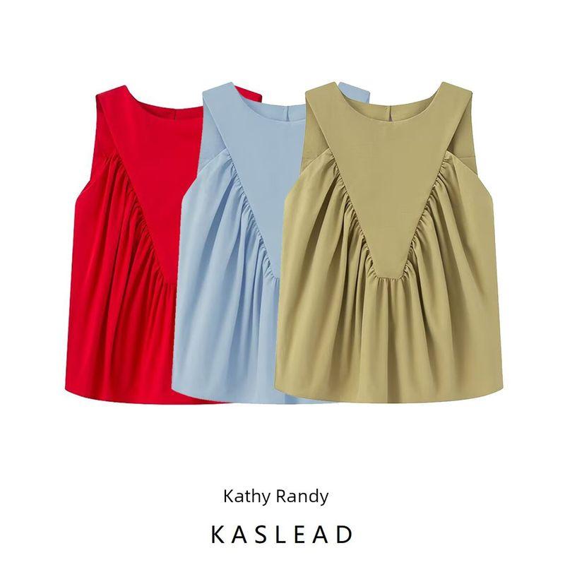 Kaslead New Arrival Women's Fashion Style Stylish Simple and Versatile Pure Color Ruched Sleeveless Vest