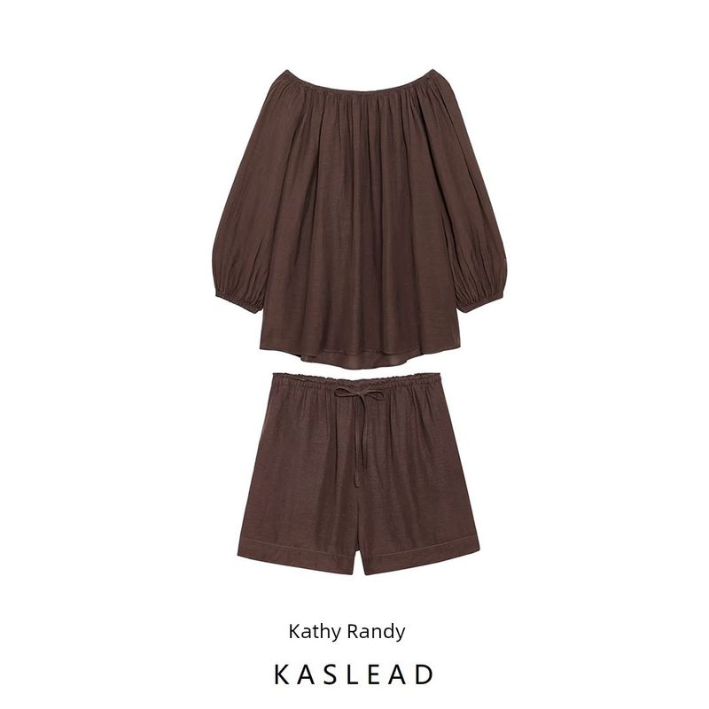 Kaslead New Women Clothes Western Style Loose off-Shoulder Top Casual Shorts 4043010 4043243