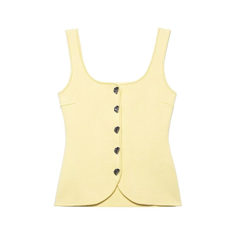 Kaslead New Arrival Women's Clothing Fashion Style Fashion Minimalist Plain Stitch Round Neck Shoulder Strap Tops 5536038