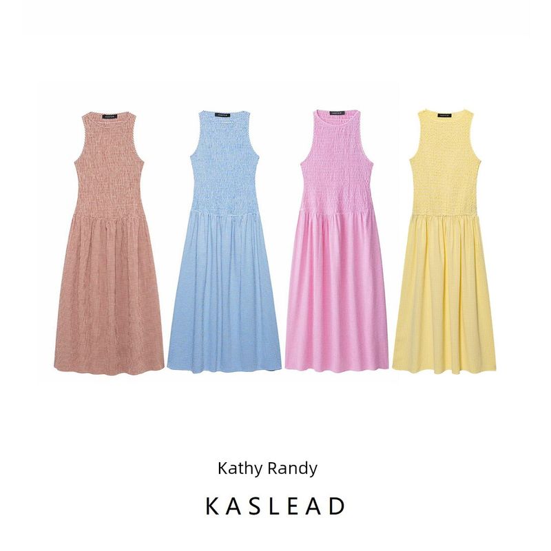Kaslead New Arrival Women's Clothing Fashion Style Fashion Minimalist Elegant Grid Midi Skirt Dress 3067329