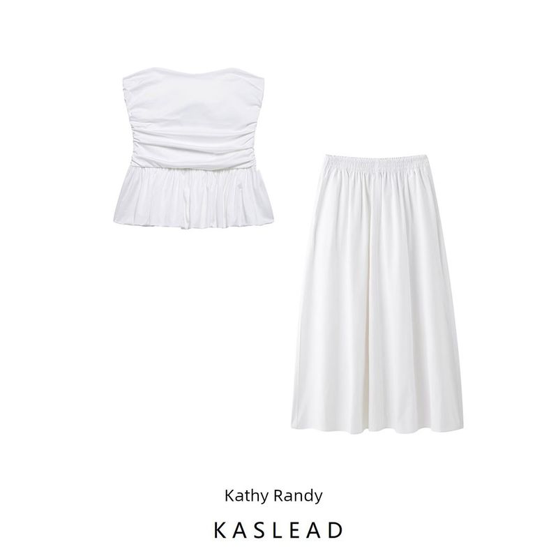 Kaslead New Arrival Women's Clothing Fashion Style Straight Collar off-the-Shoulder Tube Top Tops Skirt 4764018 4764400
