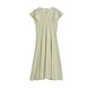 CS Summer New Product Women's Clothes Cotton Pleated V Neck Standard Edition Flounced Sleeve Mid Length Long Length Dress 1272841