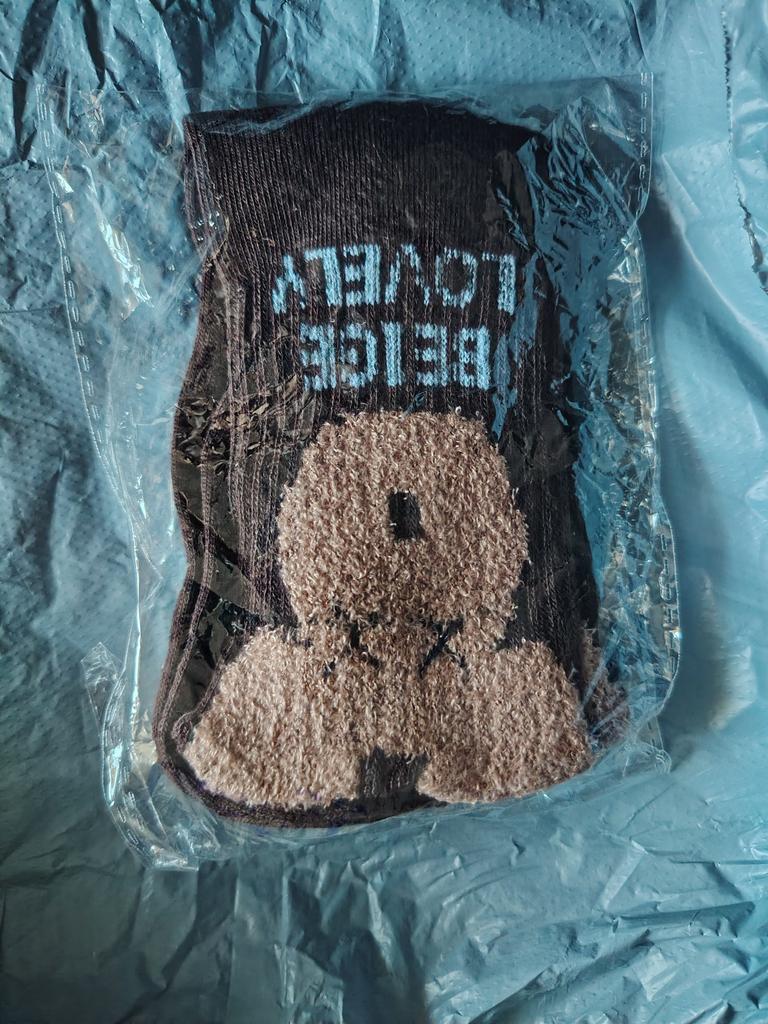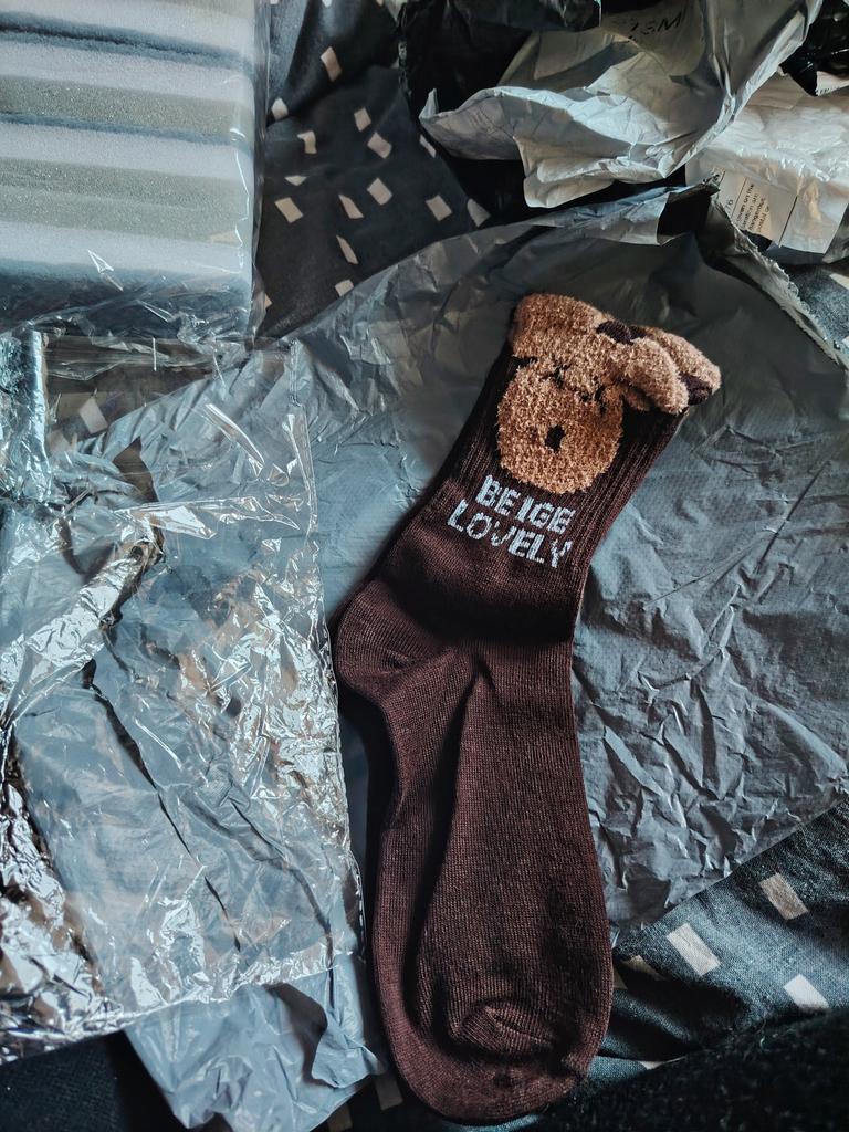 Women's Cute Cartoon Bear Mid-Calf Socks, Cotton Feather Yarn, Thick and Cozy, Black Japanese Style.