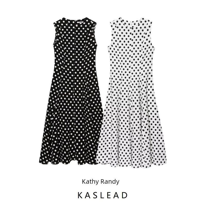 Kaslead New Women Clothes Western Style Fashion Slimming Polka Dot Midi Sleeveless Dress 2183057